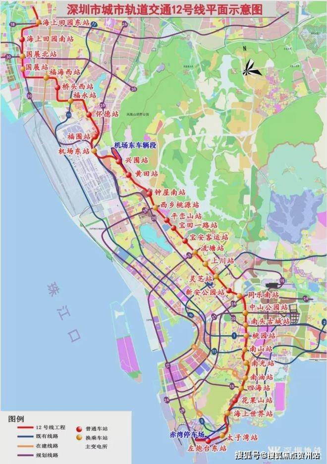 地铁12号线由南向北依次串联蛇口自贸区、南山中心区、前海自贸区、宝安中心区、机场和会展片区,是支撑深圳西部发展轴的轨道交通骨干线。