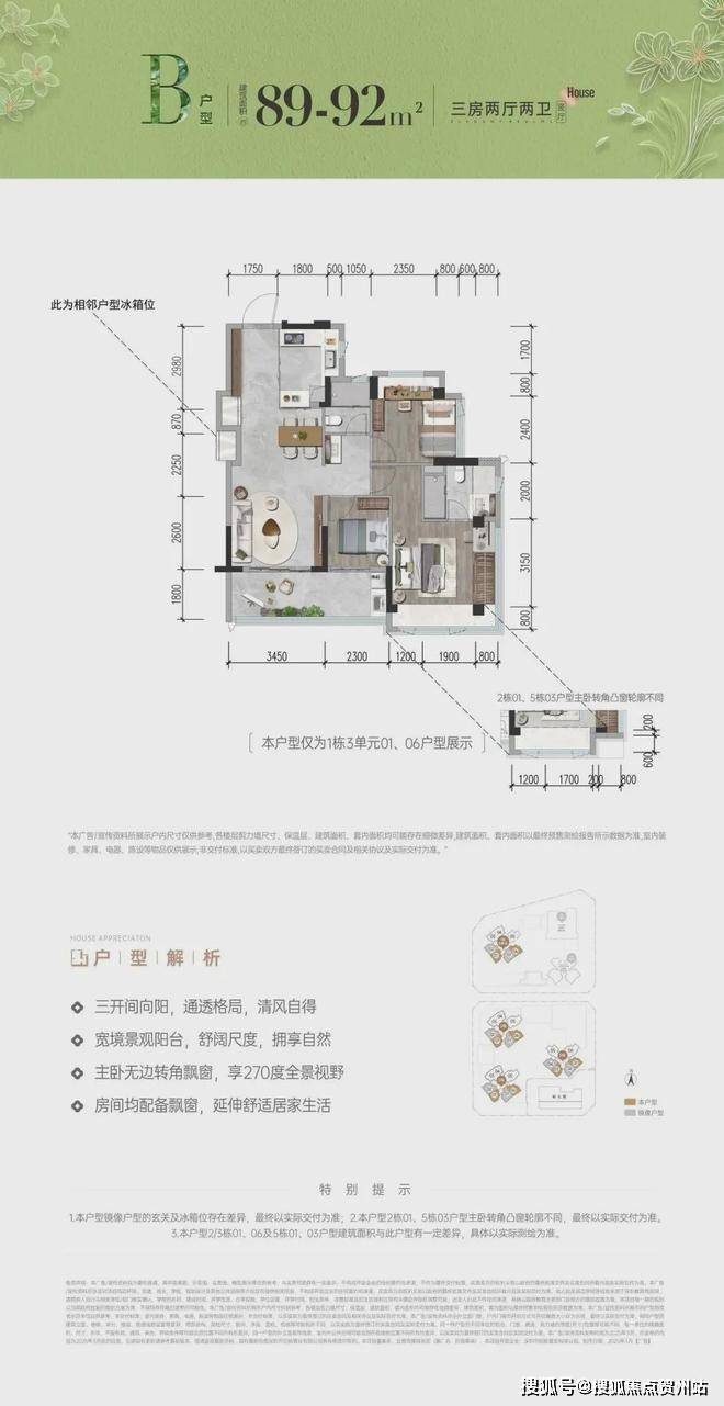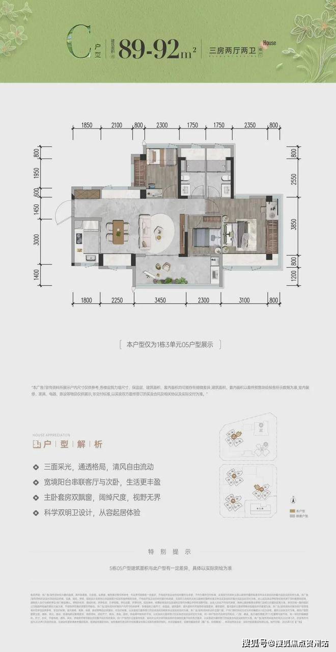 作为招商蛇口深圳公司首代、前海会展片区首个超级新规作品,项目建面约78-117㎡三至四房户型,拓展后实际使用率高达96%-105%,兼顾实用、宽敞、阳光与精致。