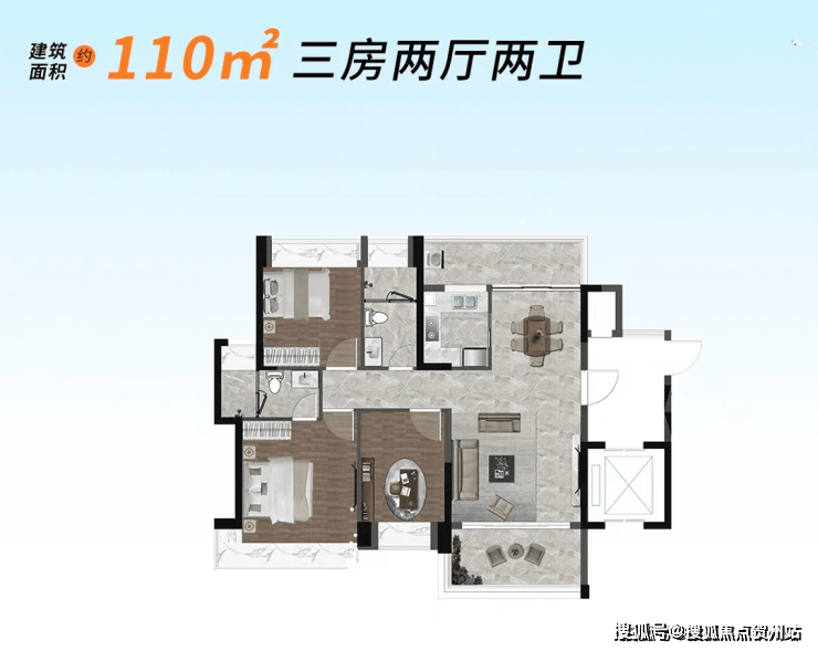 项目推出建面约85-120㎡精装二至三房,品质感拉满。