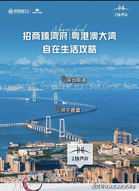 招商臻湾府是央企招商蛇口联合中梁控股在中山翠亨新区马鞍岛打造的精装现房大盘,深中通道出口约 1.5km,30 分钟直达深圳前海,当前主推三期 16 栋少量房源与部分现房尾货,精装交付,主力均价 14000-16000 元 /㎡,通勤与居住品质兼具。