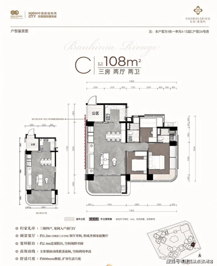 结合前海片区的定位和市场需求,预计将以改善型新规大户型为主,瞄准对前海发展潜力看好的改善型客群和资产配置者。4月9日实体样板房开放。