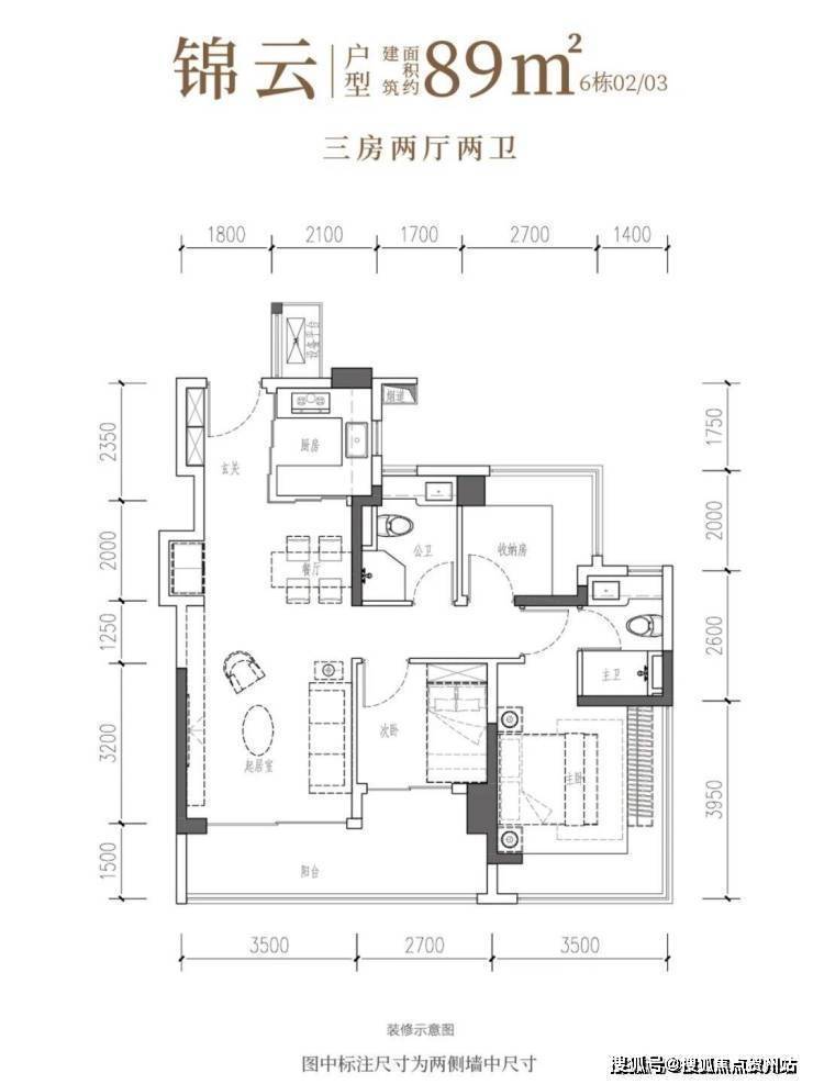 建面约89㎡3房2卫
