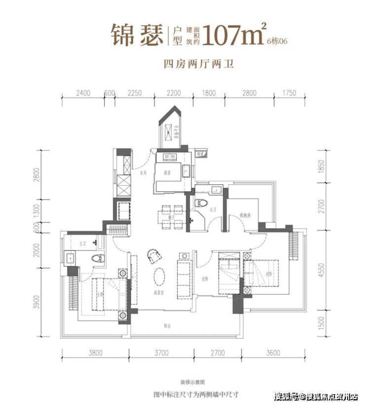 建面约107㎡4房2卫