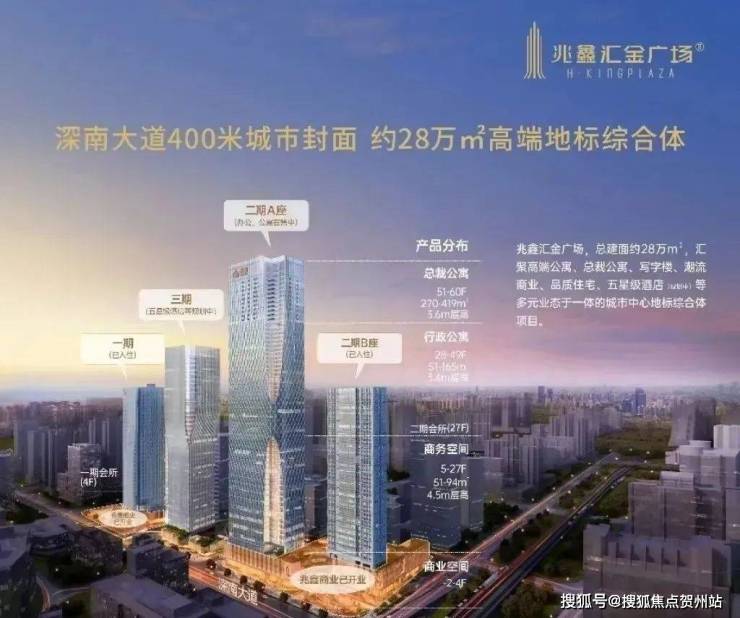兆鑫汇金广场,深南大道封面头排地标,以其262米的屹立于深南大道。