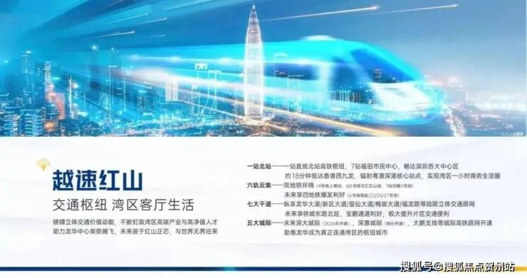 高铁交通:直线距离深圳北站约2.5公里,深圳北站作为深圳核心地铁枢纽,深圳市内一站即可通达福田站、光明城站、坪山站,两站香港西九龙站;