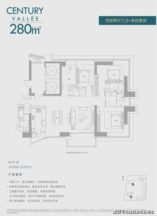 深业世纪山谷前两次都是公寓,现在住宅首发!还是定位相当高端的纯大平层,8梯3户,240㎡/280㎡配备两个独立电梯,380㎡双梯设计,实在任性!