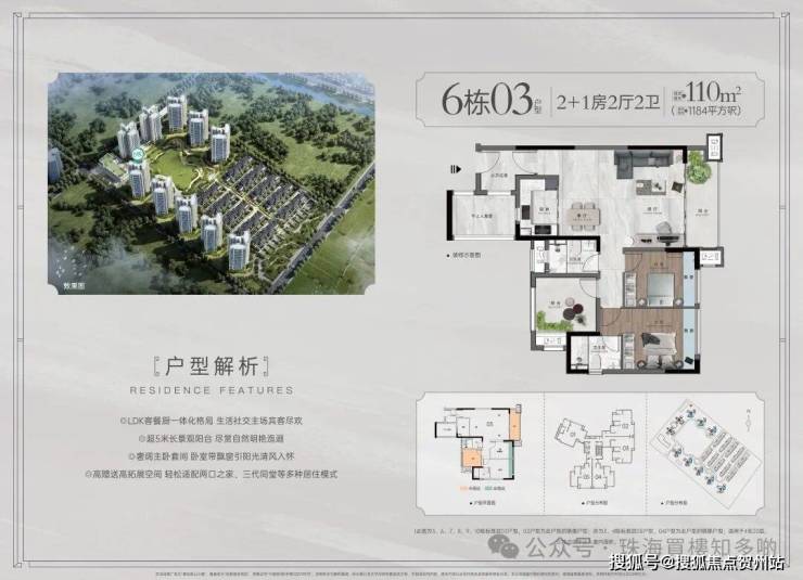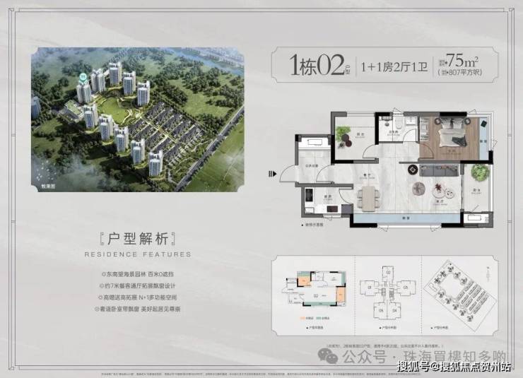 建筑层高20-21层,主打建面约75-119㎡二至四房墅质洋房,同步推出约180-412㎡中式别墅,敬献层峰人士。