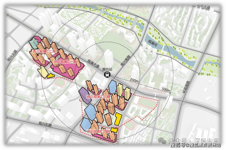 龙华百万综合体大盘,4号线北延线茜坑站地铁口物业合正观澜汇三期地块住宅方面两个区域中能卖的住宅约1700+户可售住宅,