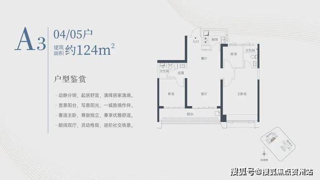 1栋一单元A3户型:面积约为124㎡