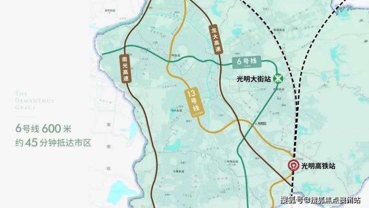 光明布局规划“一心两区”,“一心”即光明中心区,建设科学城的生活服务中心,集聚商业、居住、大型公共服务设施等顶级配套。
