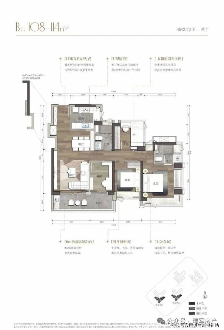 建面约108-143㎡海幕纯四房,臻藏级南向湾海视野,LDKB人性化动线设计,格局方正、高实用率,打造独立玄关、双飘窗主卧、步入式衣帽间等个性化空间。