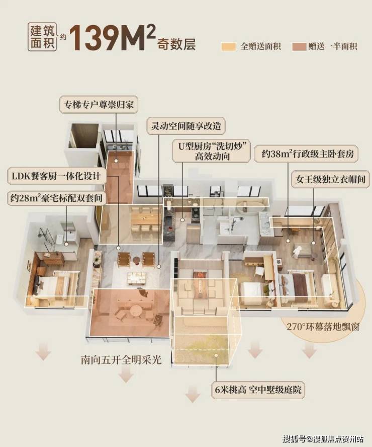 更值得一提的是,在偶数层,长辈套房直连南向约6米挑空庭院