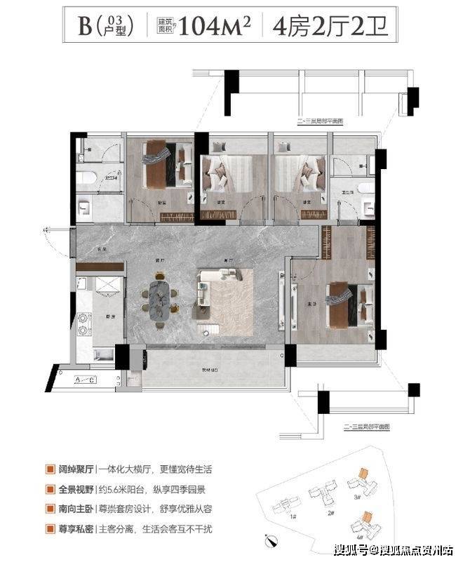 户型产品:建筑面积约91-173㎡三至四房
