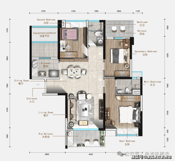 3.7米景观阳台,看中山龙脉五桂山,感受都市繁华景观,三房全南向户型,动静分区;