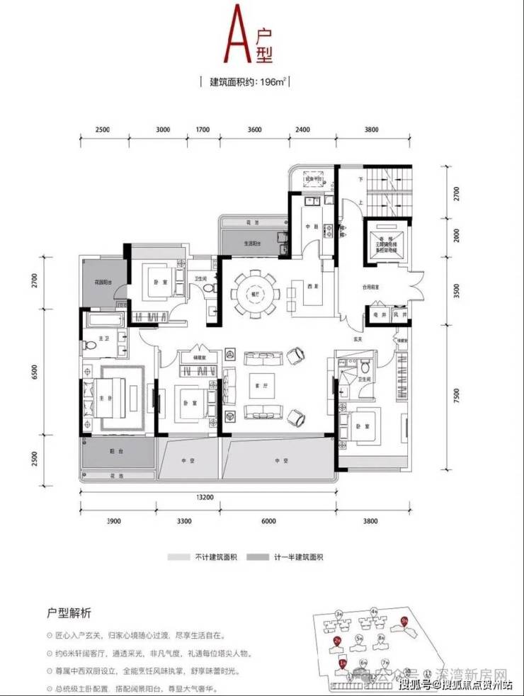 9栋是有建面约195/196㎡,一层两户。户型图奉上: