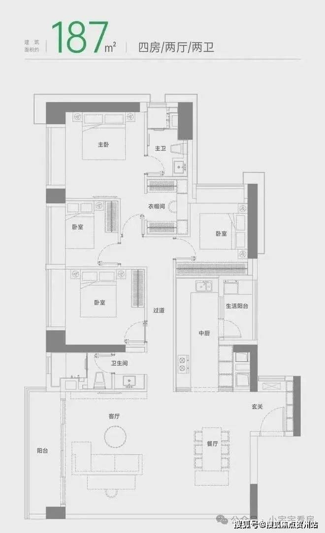 建面约187m²四房两厅两卫