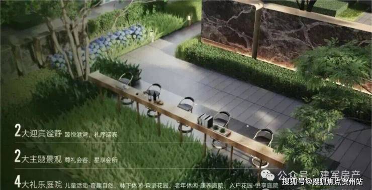 |“臻享森境”景观会客厅将自然之美与精致工艺融为一体,打造景观会客厅、艺术水景、户外吧台、阳光草坪等静谧空间。