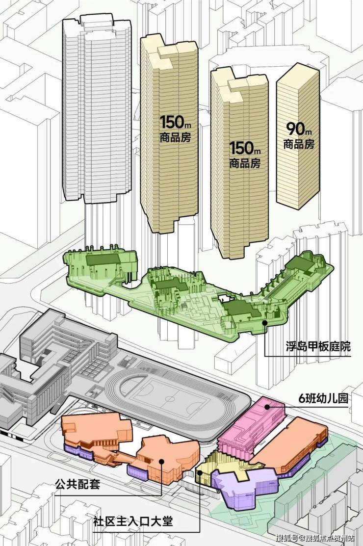 这次「后海招商玺」住宅设计采用“浮岛甲板”设计策略,四栋住宅落于甲板之上,独享甲板庭院花园。进而形成超级社区底盘 + 浮岛绿化甲板的垂直共生人居标杆。