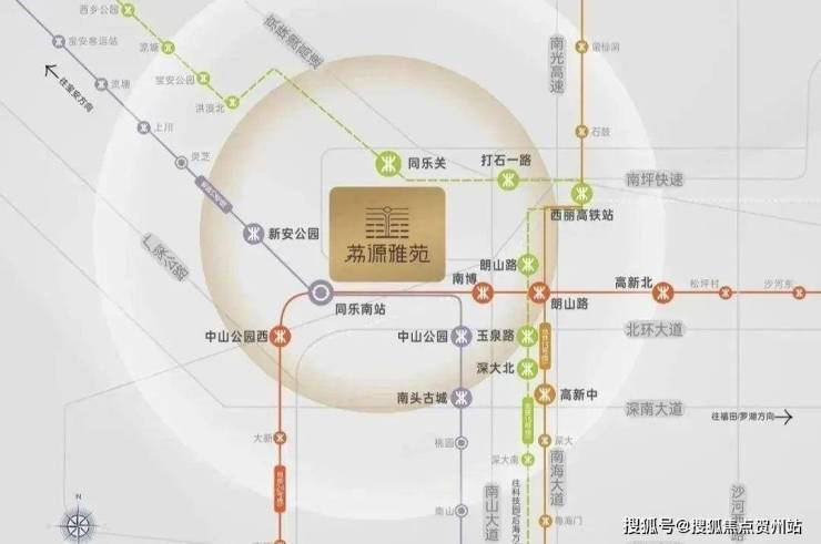 同乐公馆,位于深圳市南山区南头街道同乐片区中山园路东侧,地处南山与宝安交界处,紧邻地铁12号线(在建)同乐南站,步行距离约500米,项目坐拥南山核心区位,毗邻科技园、前海自贸区及留仙洞总部基地,5站可达高新园,辐射粤港澳大湾区核心产业带,具备承接高端人才居住需求的潜力。