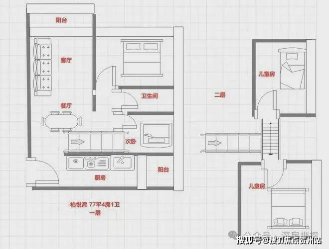 77㎡4房1卫一层4套端头位置东北,西北,东南西南,双面采光景观4面景观