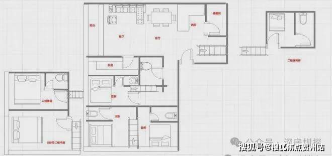 225-252㎡4+2房6卫,东北深圳湾+城景,西北前海湾+城景,东南深圳湾+大小南山,西南前海湾+大小南山