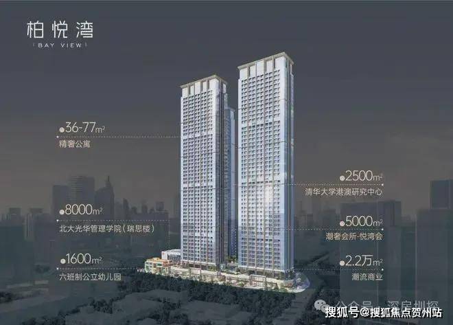 恒裕柏悦湾项目总建筑面积37万平,是集公寓、办公、幼儿园、约2.2万平商业、约5000平精英会所、约8000平北大光华管理学院、约2500平清华大学港澳研究中心等多元规划于一体的超级综合体。