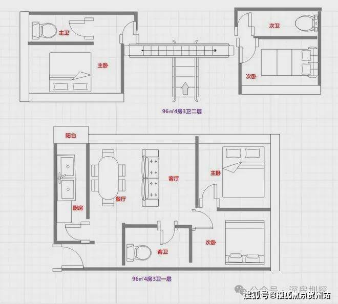 96㎡4房3卫一层2套双面采光,西南前海湾+大小南山,东南深圳湾+大小南山,东北深圳湾+城市景观