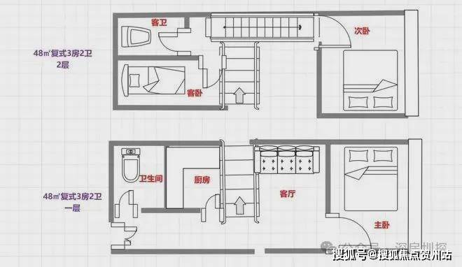 48㎡㎡3房2卫东北看深圳湾+城市景观,西南看前海湾+大小南山