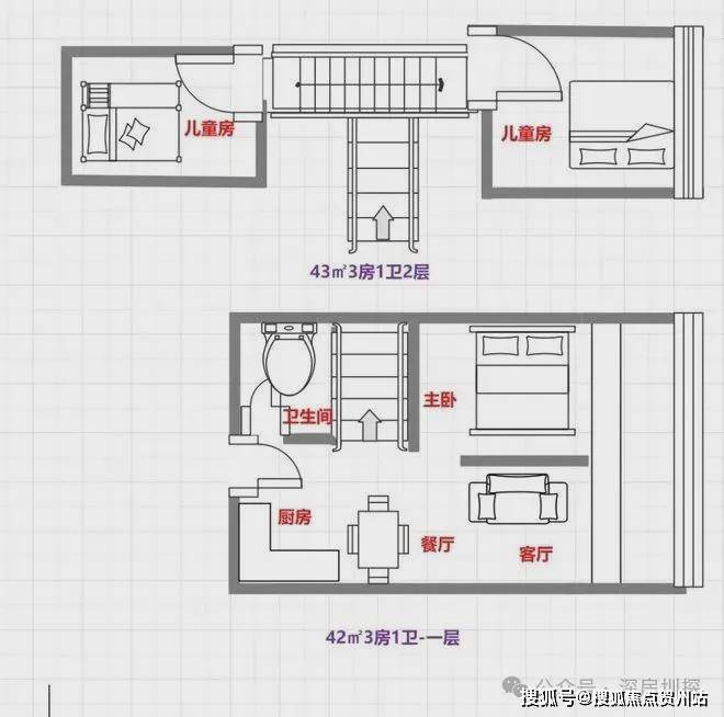 42㎡3房1卫东北看深圳湾+城市景观跟西南朝向看前海湾跟大小南山