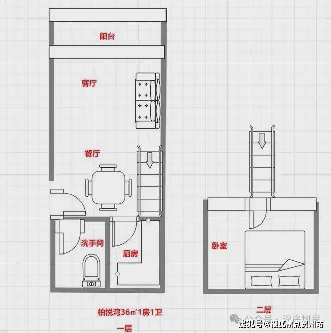 公寓36㎡1房2庁1卫一层4户西北朝向看前海湾跟城市景观跟东南朝向看深圳湾跟大小南山