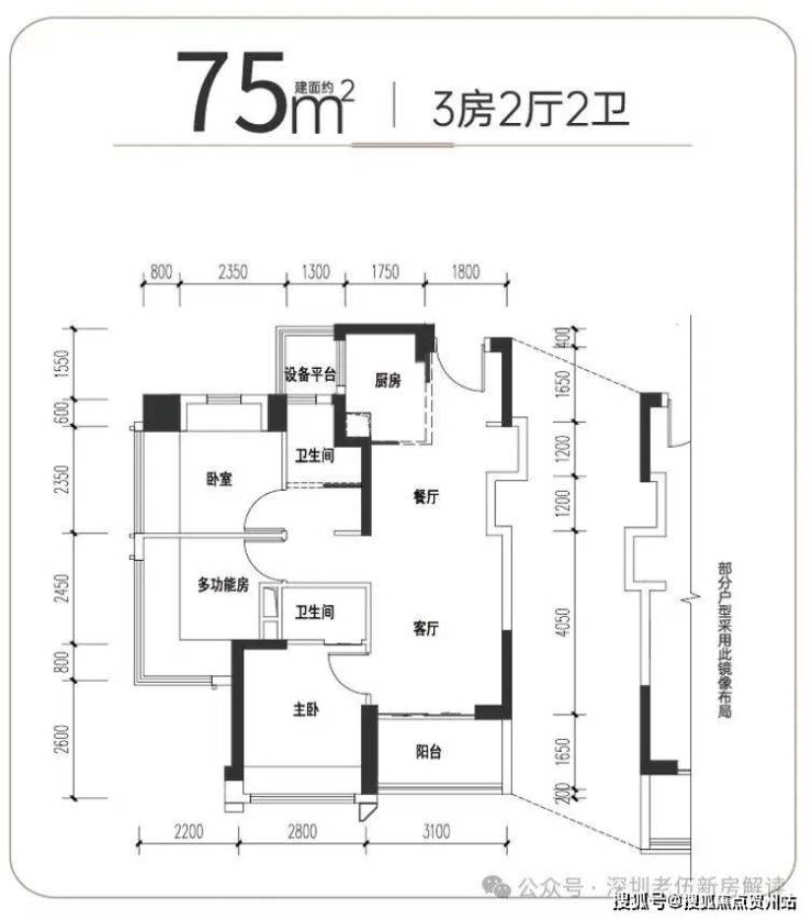 ● 75平3房2厅2卫:真正的同等面积多一间房,还多一间卫生间!
