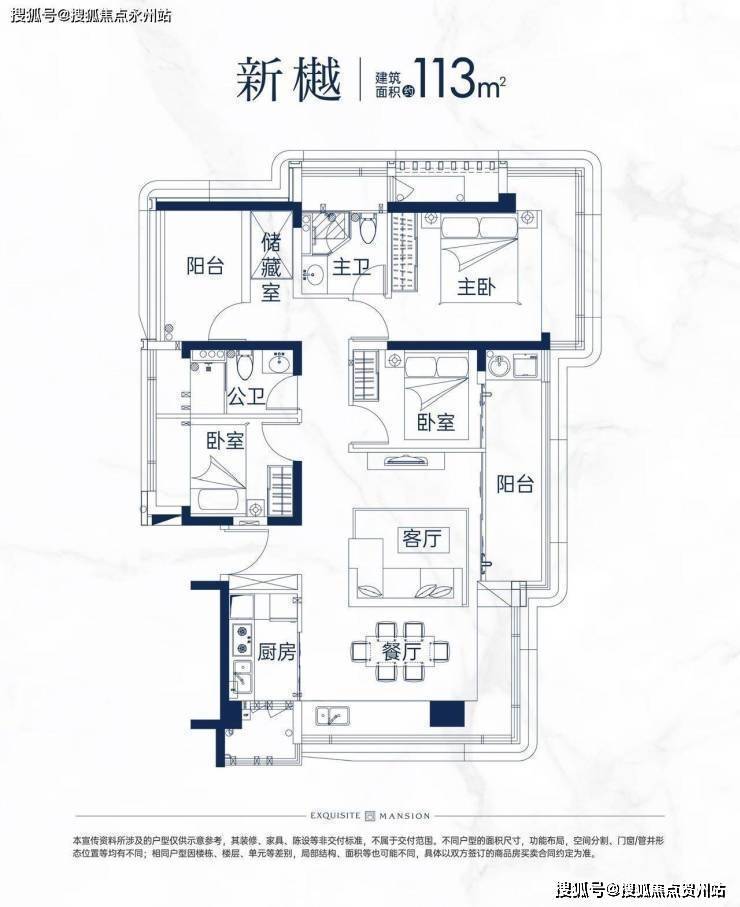 113-123㎡四房:横厅南北通透,6个飘窗面,5.6米巨幕阳台,L型厨房,得房率94%。