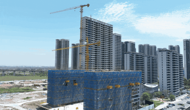 直奔工地,映入眼帘的是,这批新品已经建至十来层高。