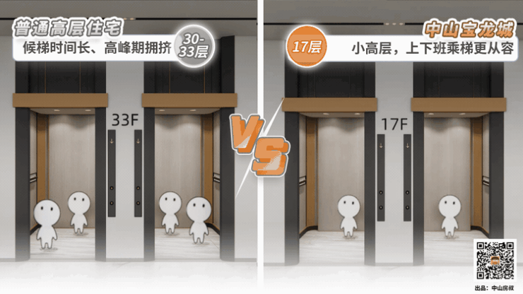 加上小高层设计,楼层不多,上下班高峰不会扎堆候梯,这意味着,业主的归家出门体验,对比常规的2梯4户高很多。