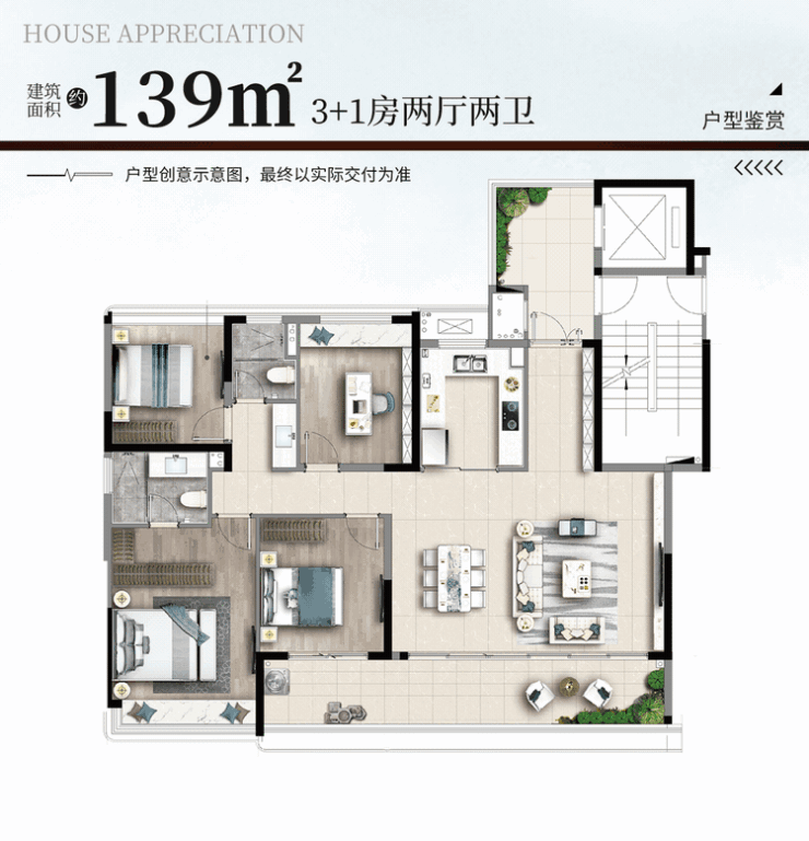 而这样奢阔的生活想象,居然,只需要139平,赚了。