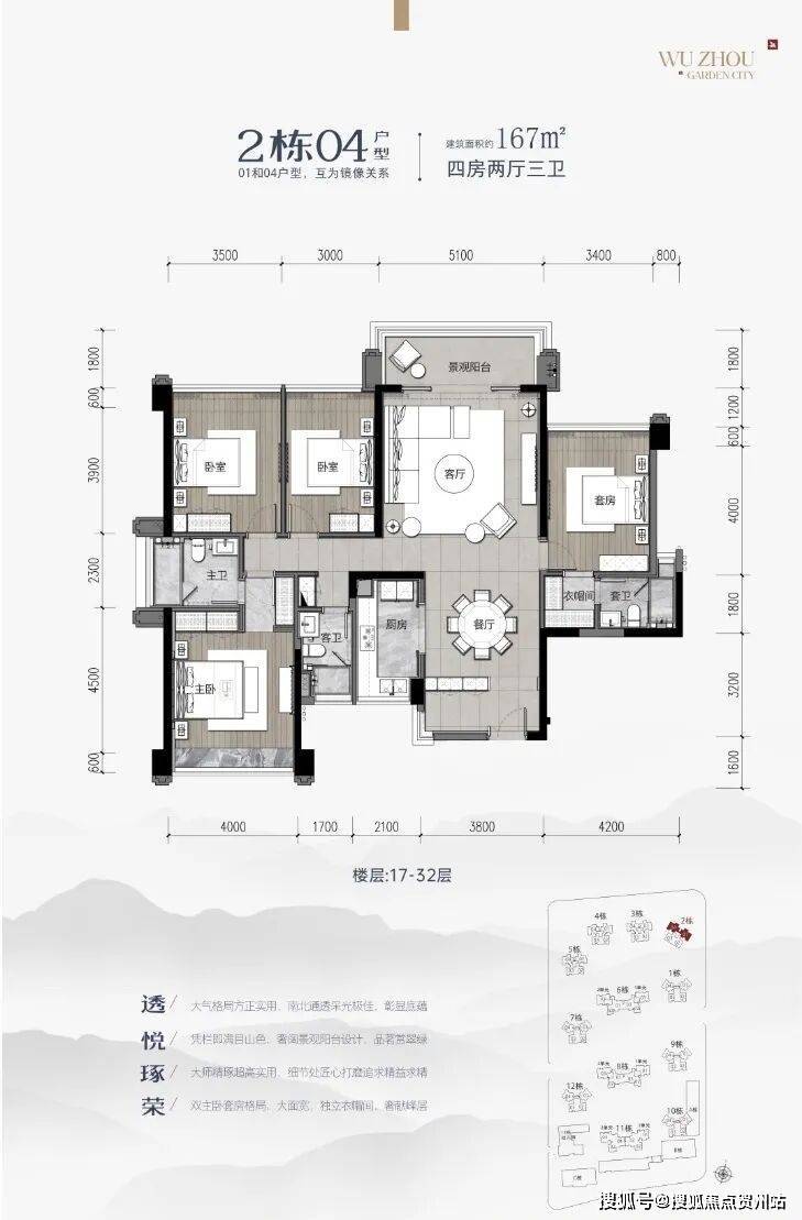 (2)168㎡五室三卫:南北通透,单价4.75万元/㎡,总价798万,适合改善型家庭。