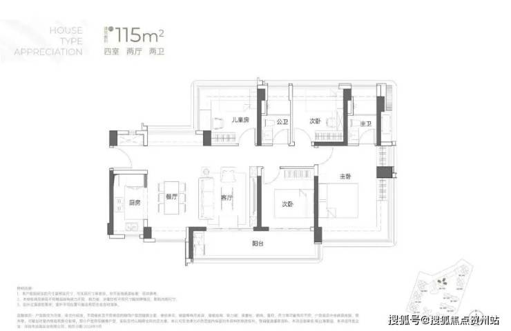 建面约115㎡4房2厅2卫