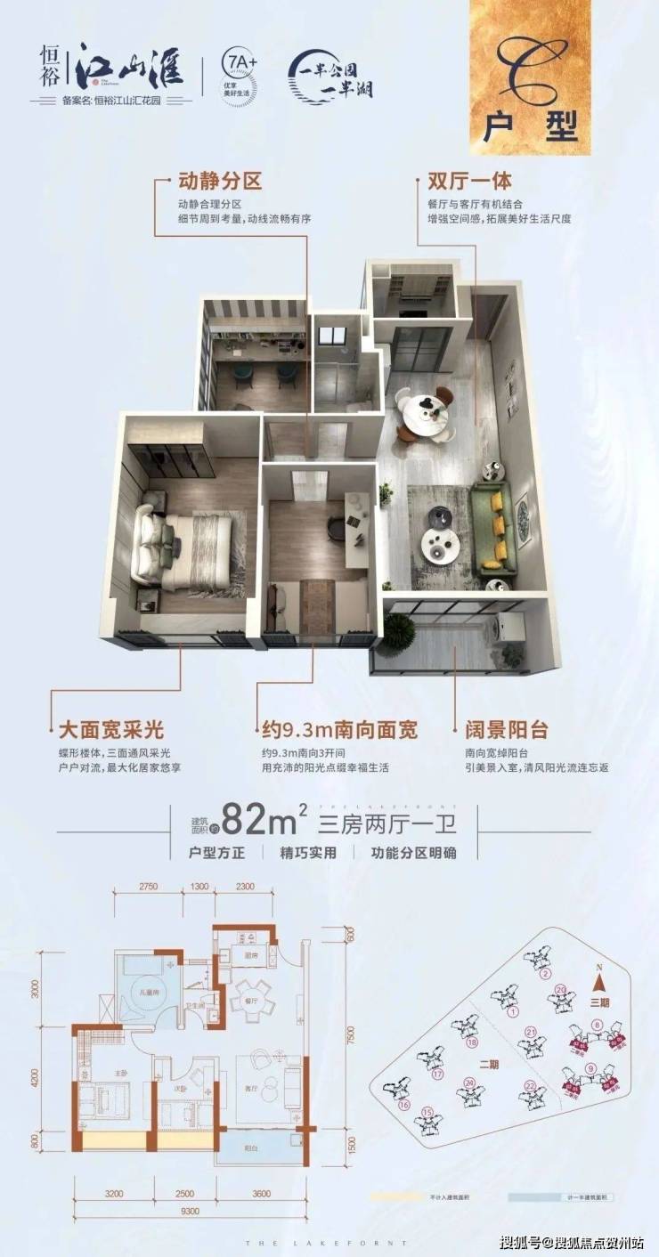 蝶形樓體,270°三面採光通風;全明通透戶型,功能分區合理,品質生活從容有度。