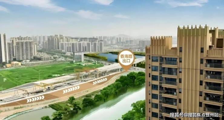 珠海西拓首站、湖心新城要塞樞紐,緊鄰香海橋湖心路出口,預計2022年通車,屆時從專案出發,20分鐘通達主城區,毗鄰鶴州珠海中心站CBD,距離專案約5公里珠海中心站(鶴洲)