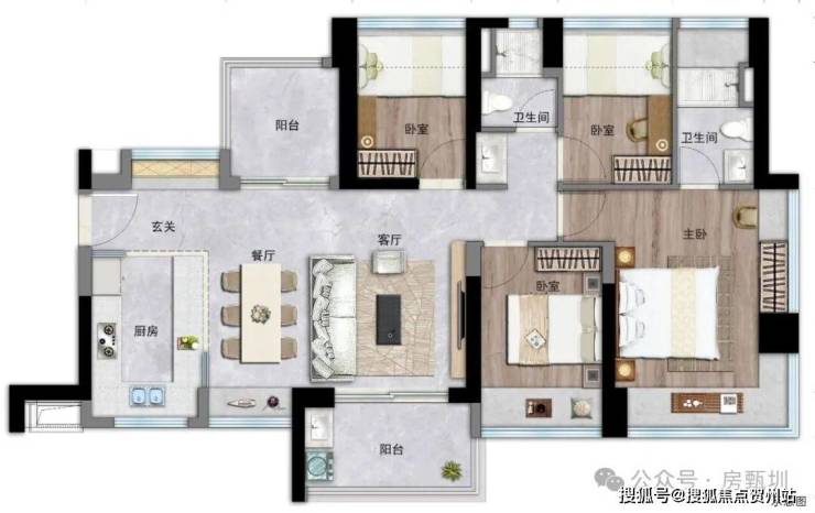 - 76㎡三房一卫:得房率89%,深圳西部稀缺小户型三房!三开间朝南,带设备平台,三段式分离卫生间,满足三口之家的居住需求,总价仅266万起。