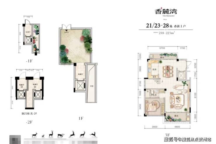 在售户型面积:叠拼182㎡ 3房2厅3卫,