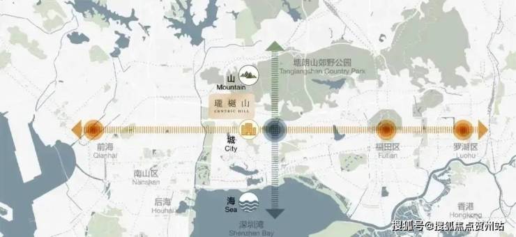 1、中心区域:深圳山海城中轴,左手香蜜湖、右手华侨城,六大总部基地环伺