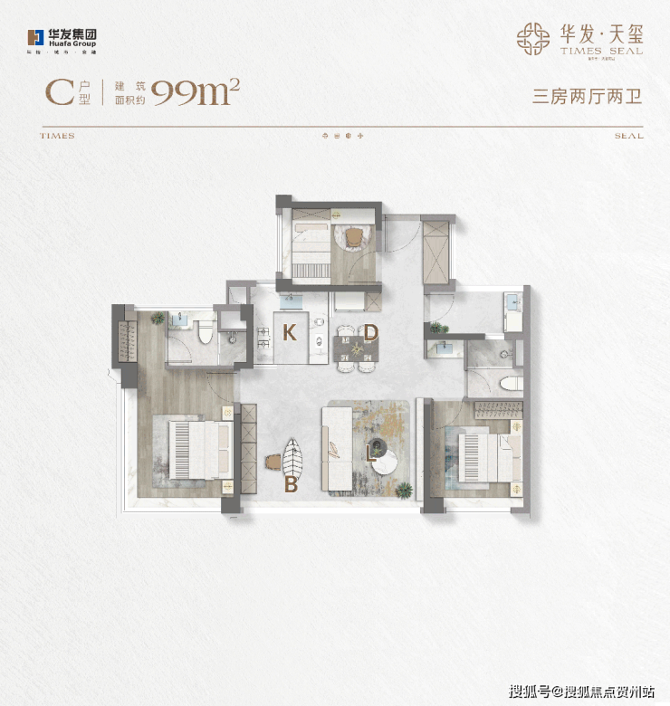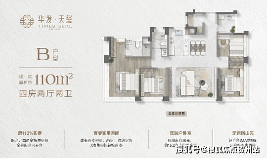 户型价格:主推建面约 99-114㎡的四房两厅两卫产品,得房率高达约 110%。其中,99㎡户型为 3+1 房,有约 35㎡LDKB 厅,可变双套房;112㎡户型户户是端户,有约 28㎡行政级端卧套房。