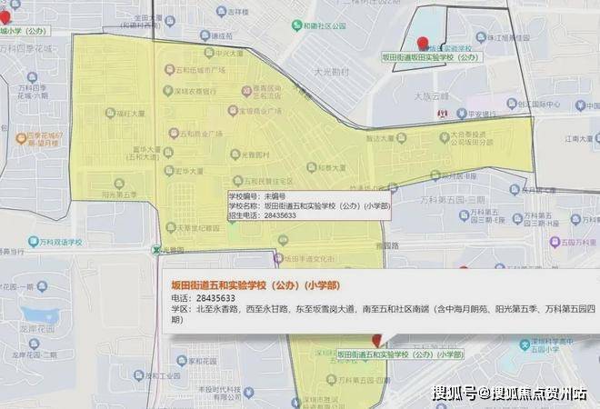 小学学区划分在,科学高中五和实验学校,中学学区划分在坂田实验学校初中部,扬美实验学校初中部,深圳实验坂田校区初中部,科学高中五和实验学校初中部。