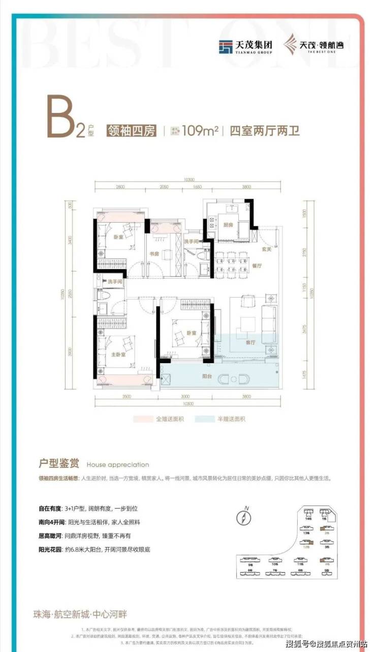 (1)109㎡四房两卫方正户型,连接景观阳台,办公学习环境更加舒适: