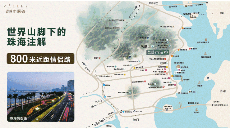 城市溪谷三期拥有三面凤凰山山景,一面高层瞰海的山、海、谷景观优势,南北大中轴观景面排布,在珠海市面在售新盘中绝无仅有。