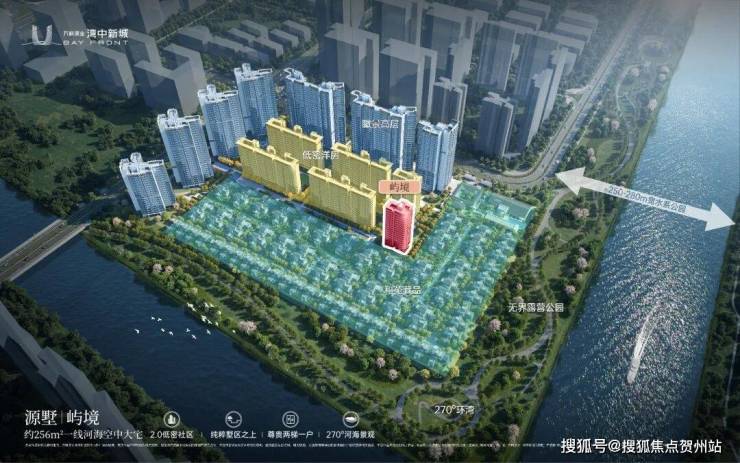 这不是一个单纯的房地产项目,而是一个建面高达175万平米的滨海城市口岸综合体,定位为未来整个黄金内湾的交通枢纽、会展中心、城市地标中心、商业中心。项目拥有一座未来预计客流量降达百万的国际会展中心、一个码头(中山客运口岸)、2幼1小、占地约9.3万平米的岭南商业风情街,以及持续开发到如今3.0产品的品质住宅。尤要强调的是,项目还拥有两座高度约达249米,未来将是整个黄金内湾的地标“双塔”,与前海遥相呼应,寓意率先“打开黄金内湾‘未来之门’”。未来它将是珠三角这条百公里黄金内湾上非常闪光的地标象征,展示着整个深圳都市圈到了一个新发展水平。