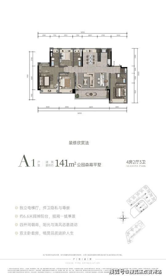 户型价格:主推建面约 92-118㎡三至四房高层和建面约 129-141㎡四房双套卧洋房,得房率高达 100%-110%。