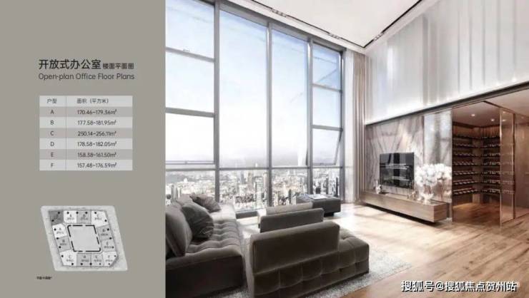 户型:酒店式办公 35-65 ㎡、开放式办公 146- 268 ㎡
