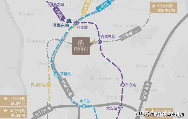 项目于5/17号线(建设中)百鸽笼站双地铁上盖,3/14号线环绕,1站瞬达罗湖,4站抵达福田芯。